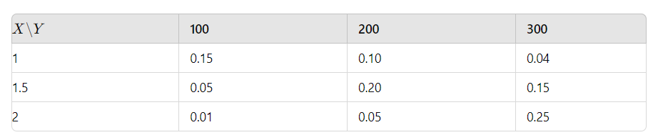 Chi phí cho quảng cáo và doanh thu của công ty lần lượt là các biến ngẫu nhiên X và Y( đơn vị: triệu đồng ) . Giả sử (X;Y) có bảng phân phối xác suất như sau: