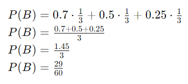 P(B)=P(B∣A1)P(A1)+P(B∣A2)P(A2)+P(B∣A3)P(A3)