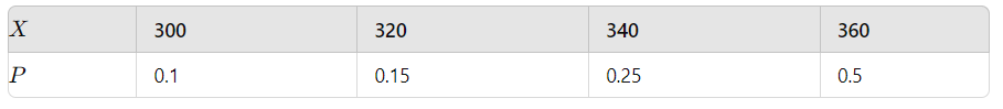 E(X)=300⋅0.1+320⋅0.15+340⋅0.25+360⋅0.5