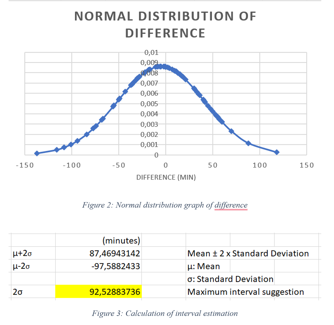 To achieve the most efficient interval where 95% of deliveries are completed within that time frame, we can estimate the maximum interval using the formula: