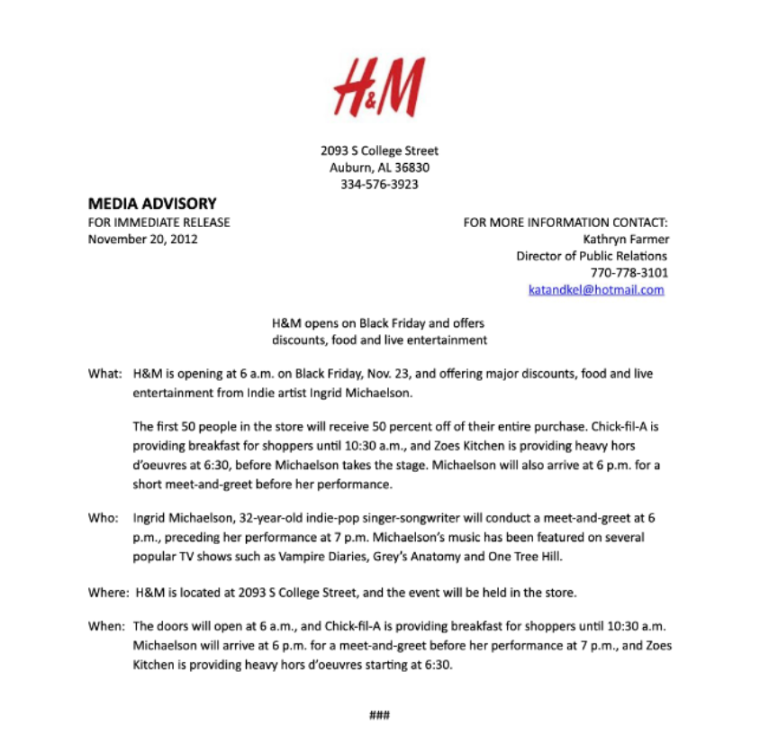 - Media kits: press release, backgrounder, audio/video/photos (if any), Q&A sheet, contact info