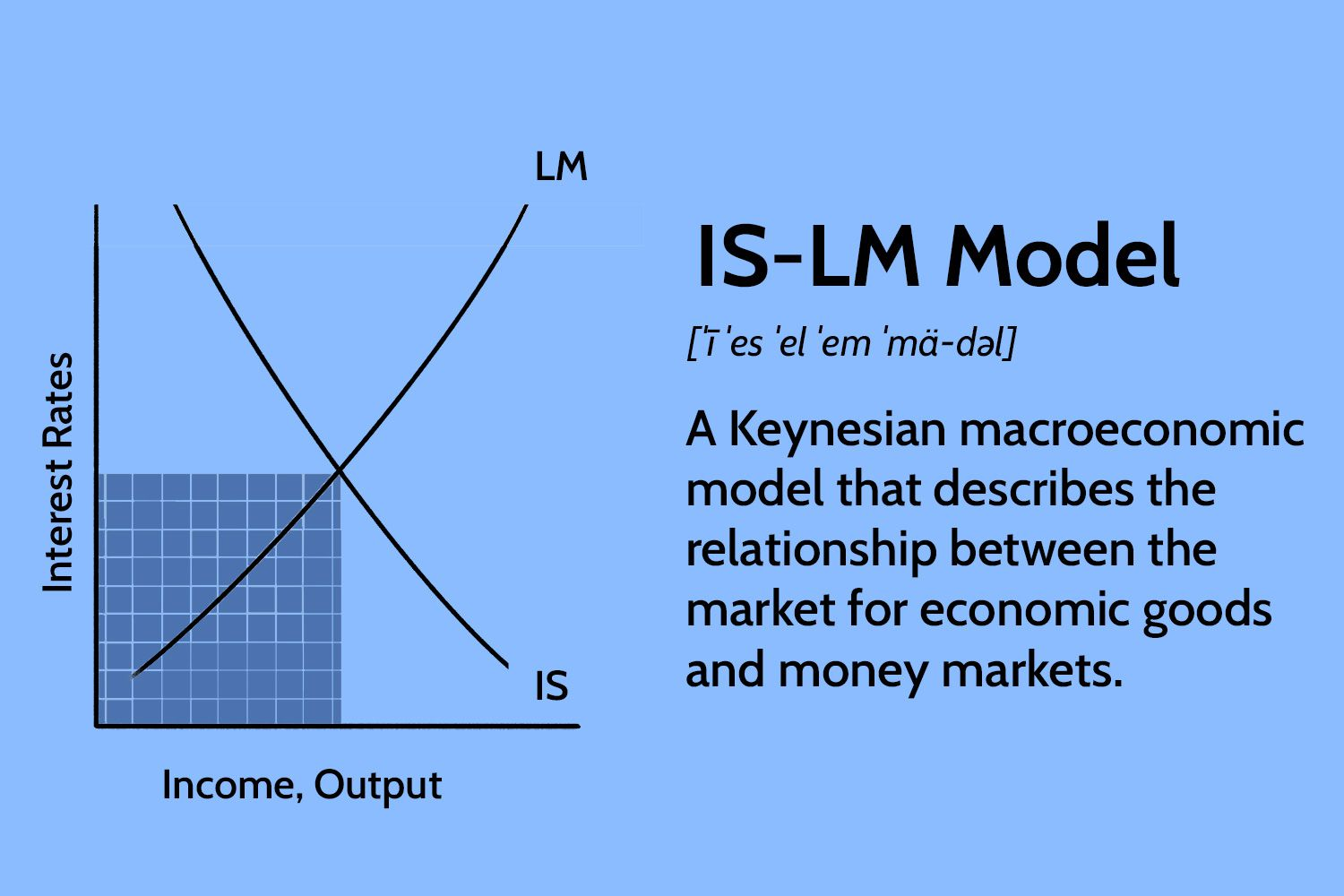 The IS-LM model shows the relationship between the goods market and the money market in an economy. The IS curve represents equilibrium in the goods market, plotting the combination of interest rates and national income where investment equals savings. The LM curve represents equilibrium in the money market, plotting the interest rate and income combination where money demand equals the fixed money supply. The intersection of the IS and LM curves determines the equilibrium interest rate and national income in the economy given fiscal and monetary policies.