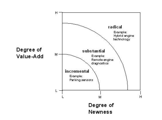 ○ Radical innovation, concerned with the exploration of new technology, is fundamentally different from incremental innovation that is concerned with exploitation of existing technology.
