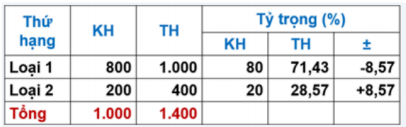 ● Nếu tỷ trọng loại sản phẩm loại 1 cao hơn và có xu hướng tăng thì tốt, chất lượng sản phẩm đang được cải thiện, cho thấy DN đã có cố gắng trong việc thực hiện nâng cao chất lượng sản phẩm