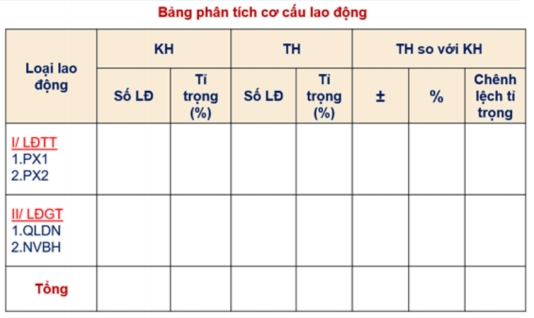 - NX: nếu tỉ trọng lượng lao động trực tiếp tăng thì tốt, và ngược lại thì không tốt cho thấy bộ máy quản lý cồng kềnh, cần tinh giảm nhân sự khối văn
