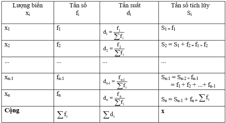 ■ Số lượng các lượng biến ít: Mỗi loại hình thành một tổ.