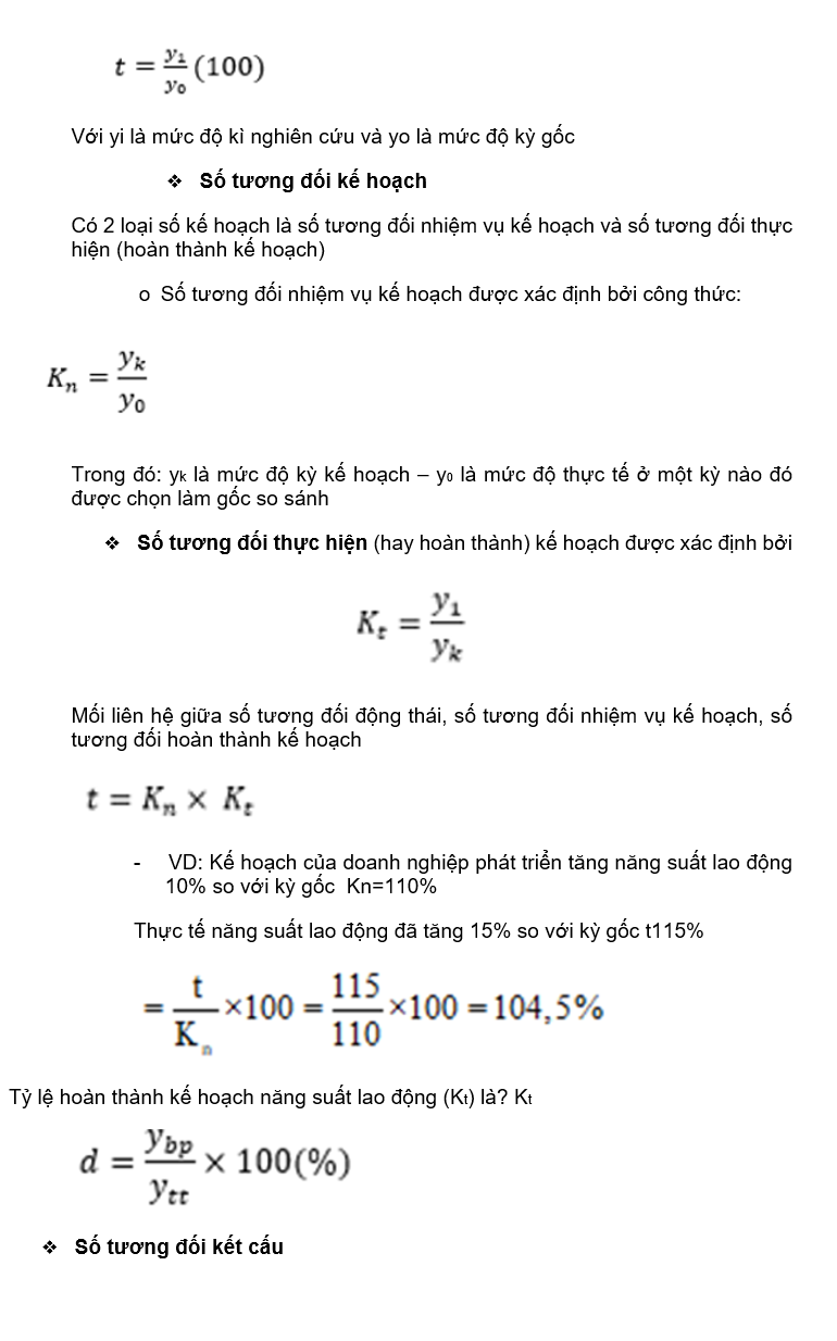 Số tương đối động thái là số tương đối biểu hiện biến động về mức độ của hiện tượng nghiên cứu qua thời gian. Số tương đối động thái xác định bằng công thức