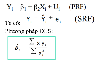 - β1, β2 ước lượng được bằng phương pháp OLS bằng cách đặt