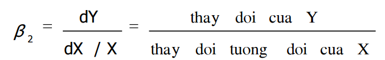 - β2: là hệ số co giãn của Y theo X