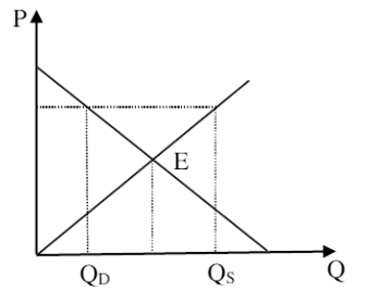 - Trên thị trường xuất hiện mức giá P1 > PE => người mua sẽ mua tại QD < QE nhưng người bán sẽ bán tại Qs > QE => Mức sản lượng trao đổi thực tế trên thị trường là QD, thị trường xuất hiện dư thừa một khoảng là QD QS